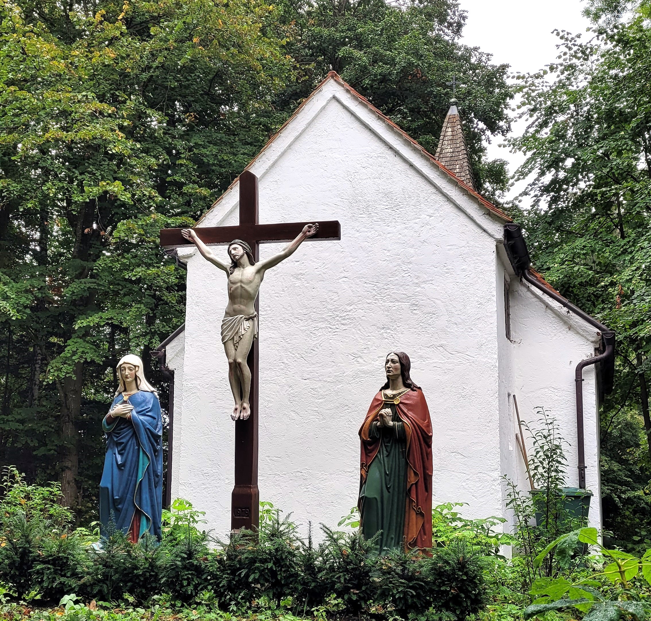 Kreuzigungsgruppe und Kapelle auf dem Kalvarienberg bei Rott
