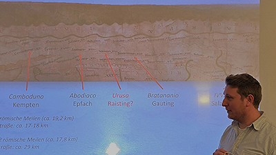Am 20. November hielt der provinzialrömische Archäologe Peter Gerhardt einen Vortrag über das Römische Raisting und die dortigen Funde und Befunde. Er begann mit einem Überblick über die geschichtlichen Zusammenhänge der römischen Expansion. Während Gallien und das benachbarte Noricum bereits unter römischem Einfluss standen, blieb das Alpenvorland zwischen Schwarzwald, Donau und Inn zunächst außerhalb römischer Kontrolle.