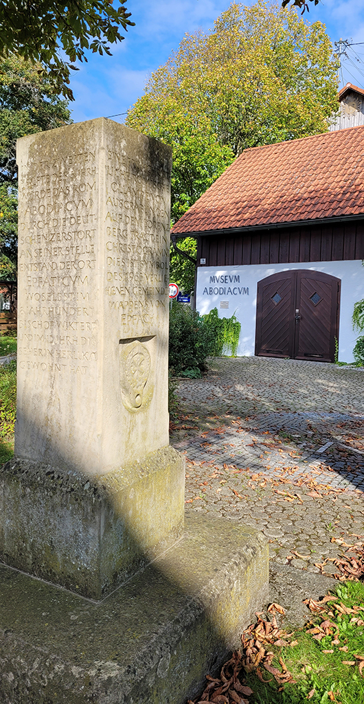 Vor dem Museum: Ein Gedenkstein an die Römerstadt Abodiacum