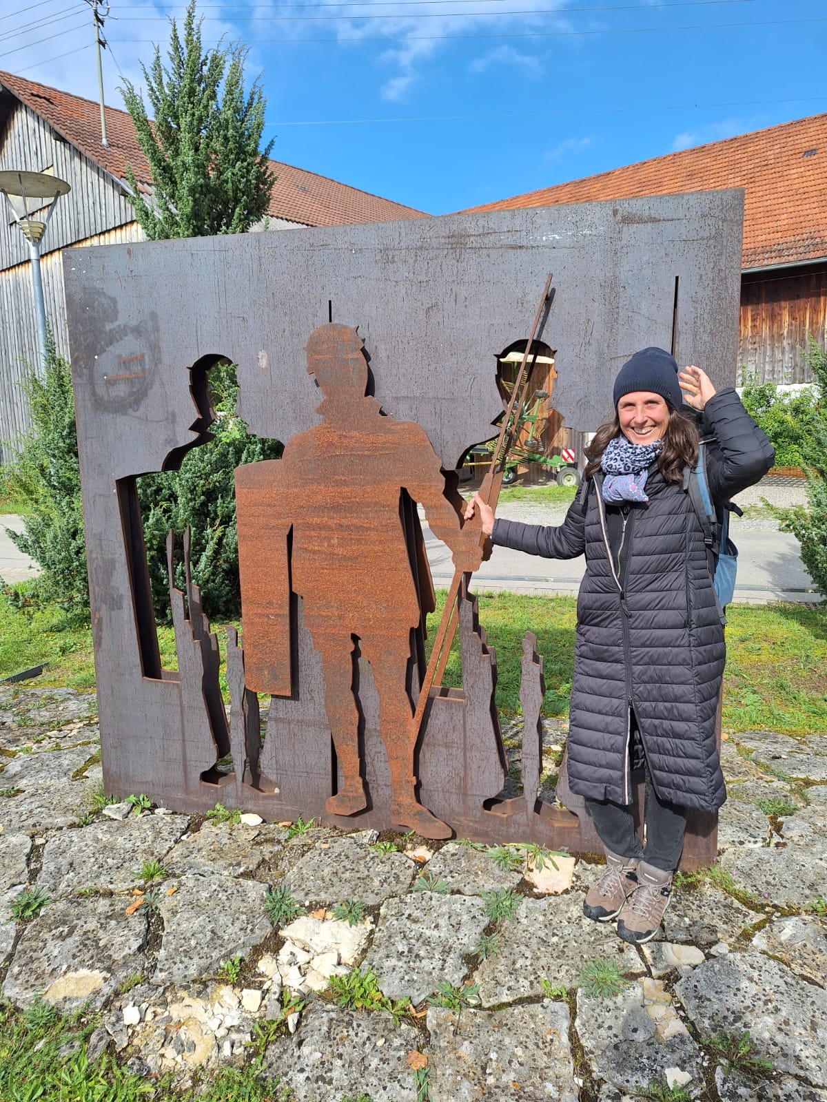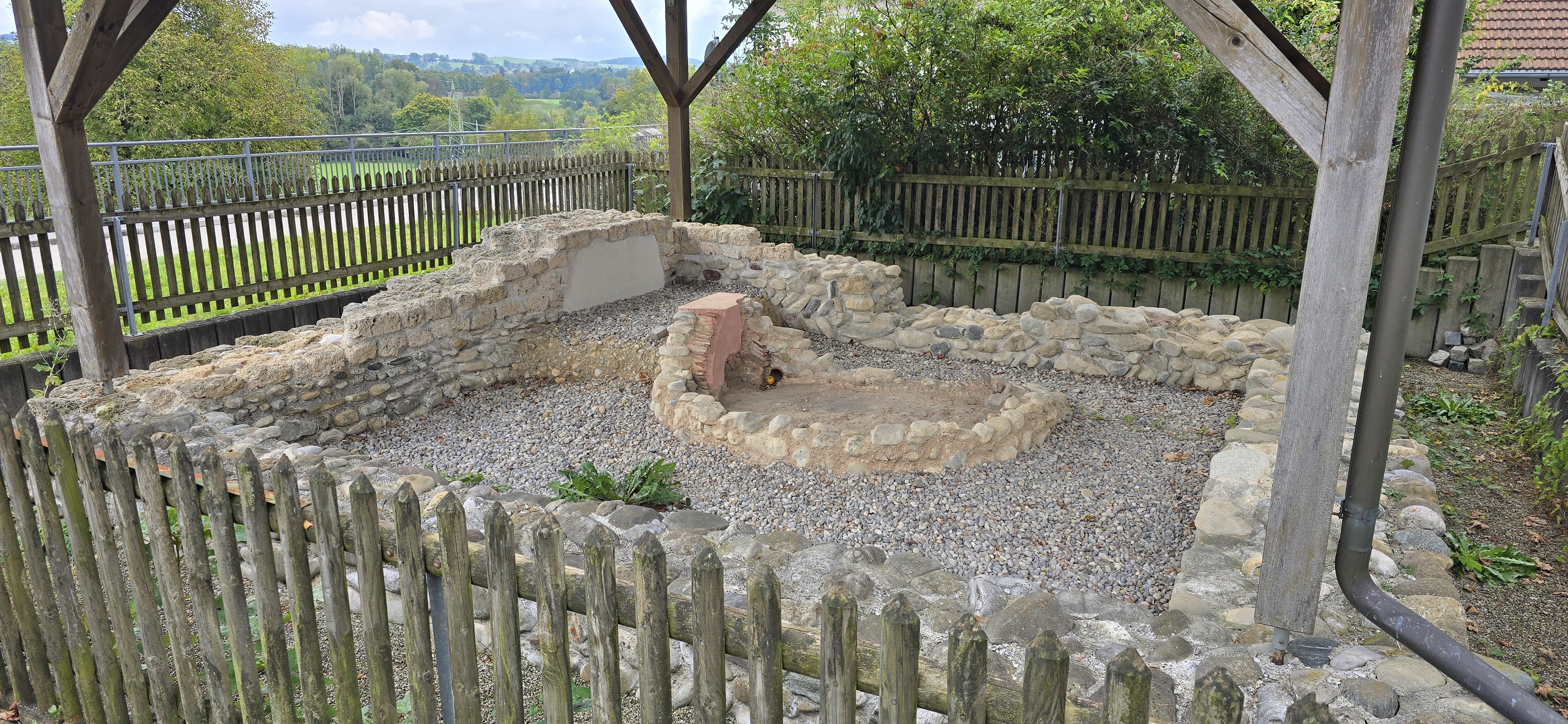 Unser letztes Ziel war die rekonstruierte Römerstraße in Epfach. Ein anschauliches Freilichtobjekt, das den Verlauf der antiken Via Claudia Augusta im Ortsbereich sichtbar macht. Sie wurde im Rahmen der touristischen und historischen Aufwertung des Ortes nachgebildet und vermittelt ein eindrucksvolles Bild römischer Straßenbaukunst. Die Straße zeigt den typischen mehrschichtigen Aufbau römischer Fernstraßen: mit Kies-, Sand- und Steinlagen, sorgfältig verdichtet und leicht gewölbt zur besseren Entwässerung.